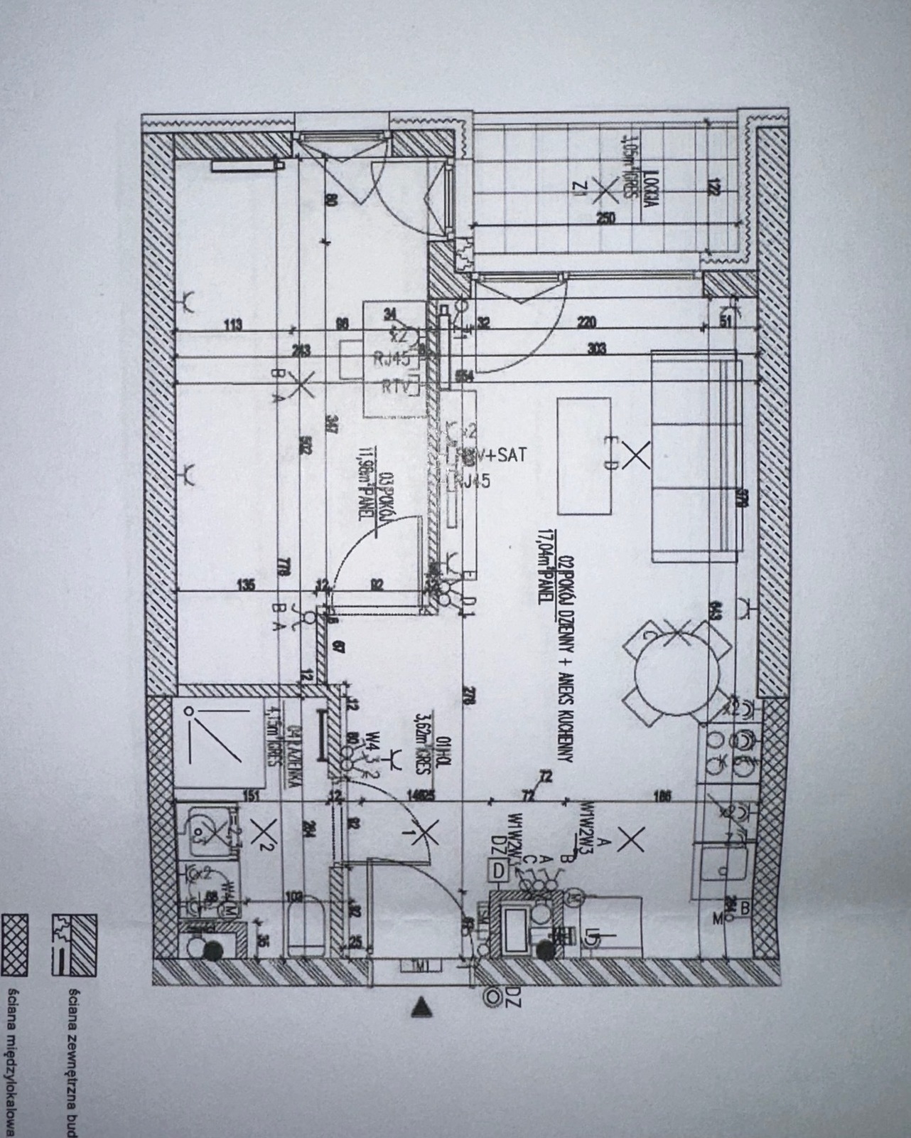living room + kitchenette 17.04 m²