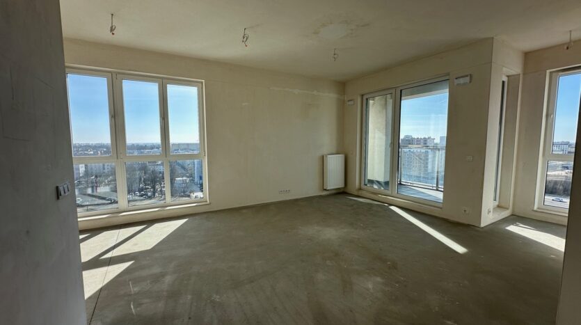 For sale: a bright, four-room apartment with an area of ​​80.14 m², located on the top (10th) floor of the PRIMO development at 17B Tramwajowa Street in Łódź.