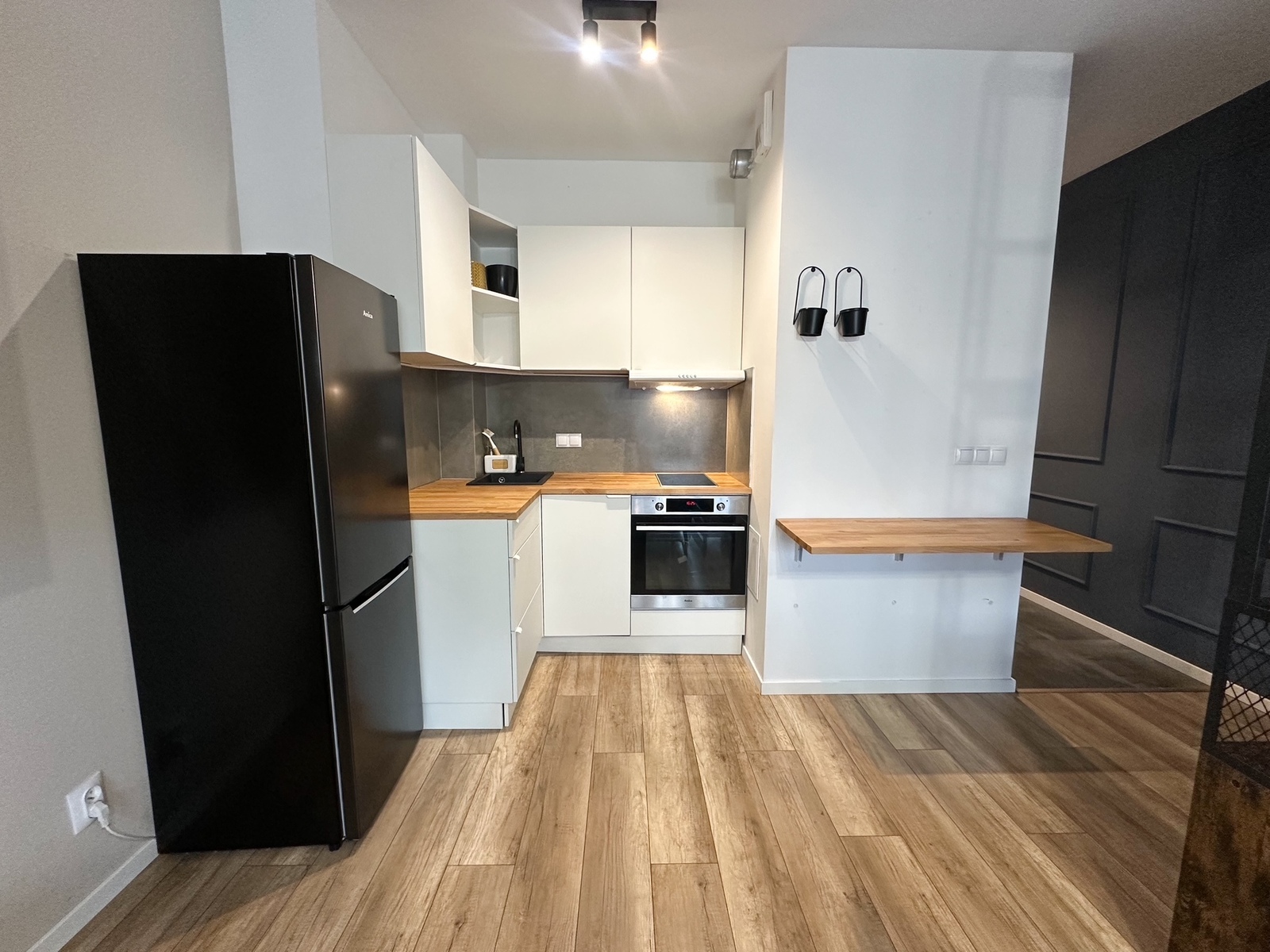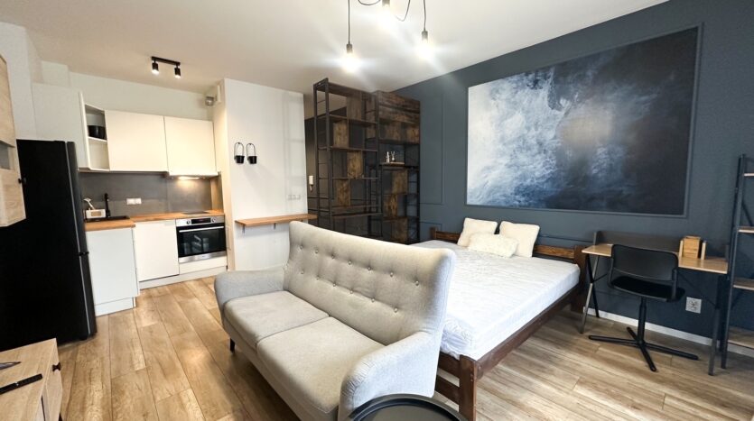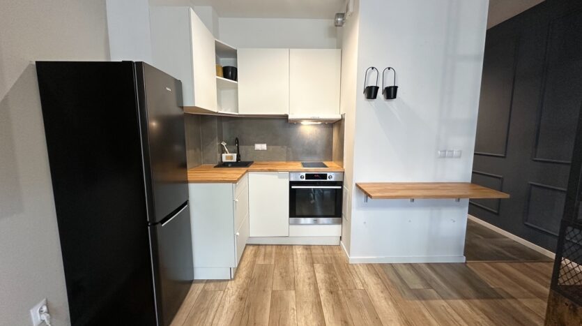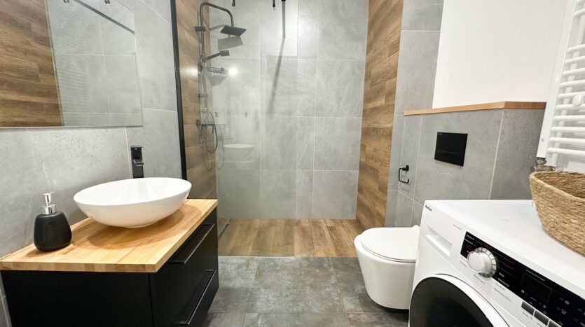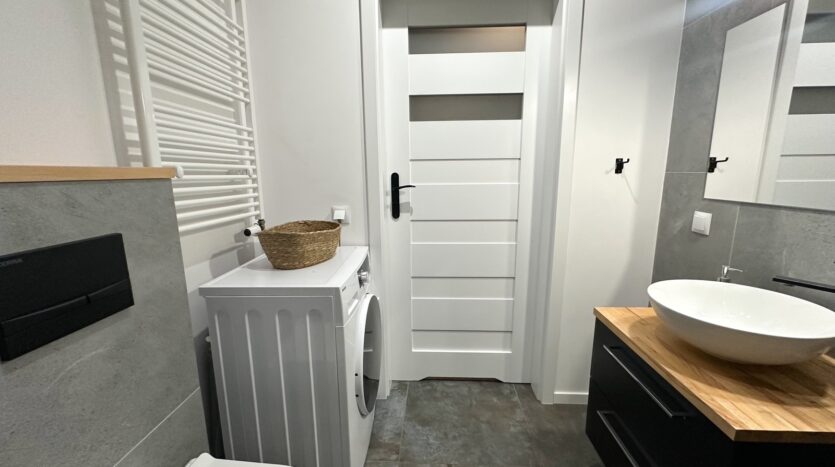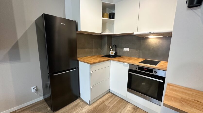 – The apartment is furnished and equipped with all household appliances, such as a refrigerator, freezer, dishwasher, oven, induction hob, washing machine, and TV.