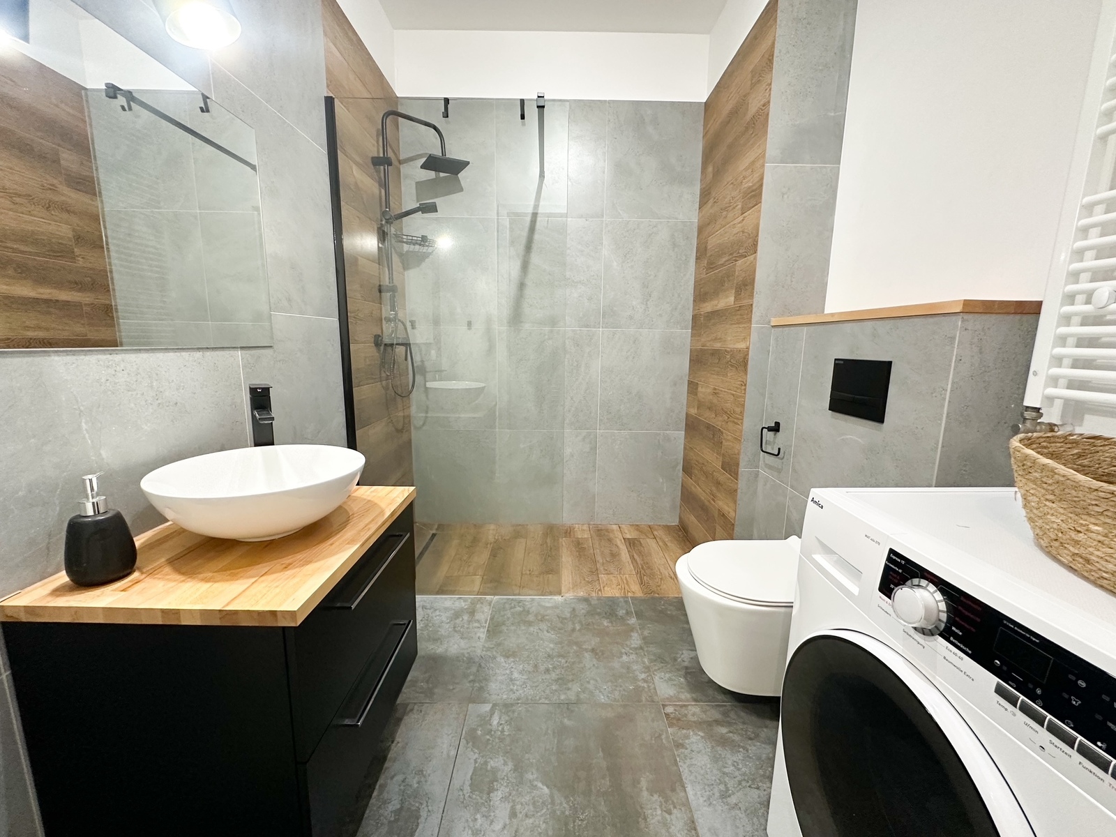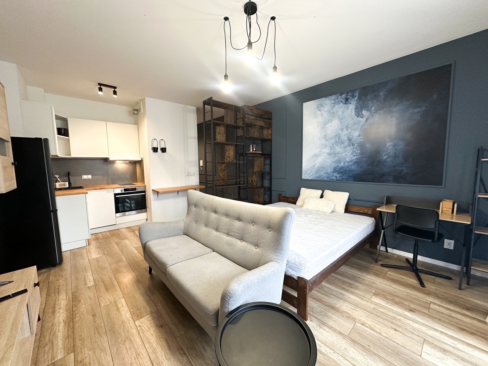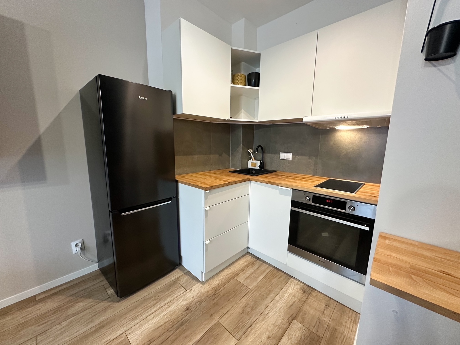 – The apartment is furnished and equipped with all household appliances, such as a refrigerator, freezer, dishwasher, oven, induction hob, washing machine, and TV.