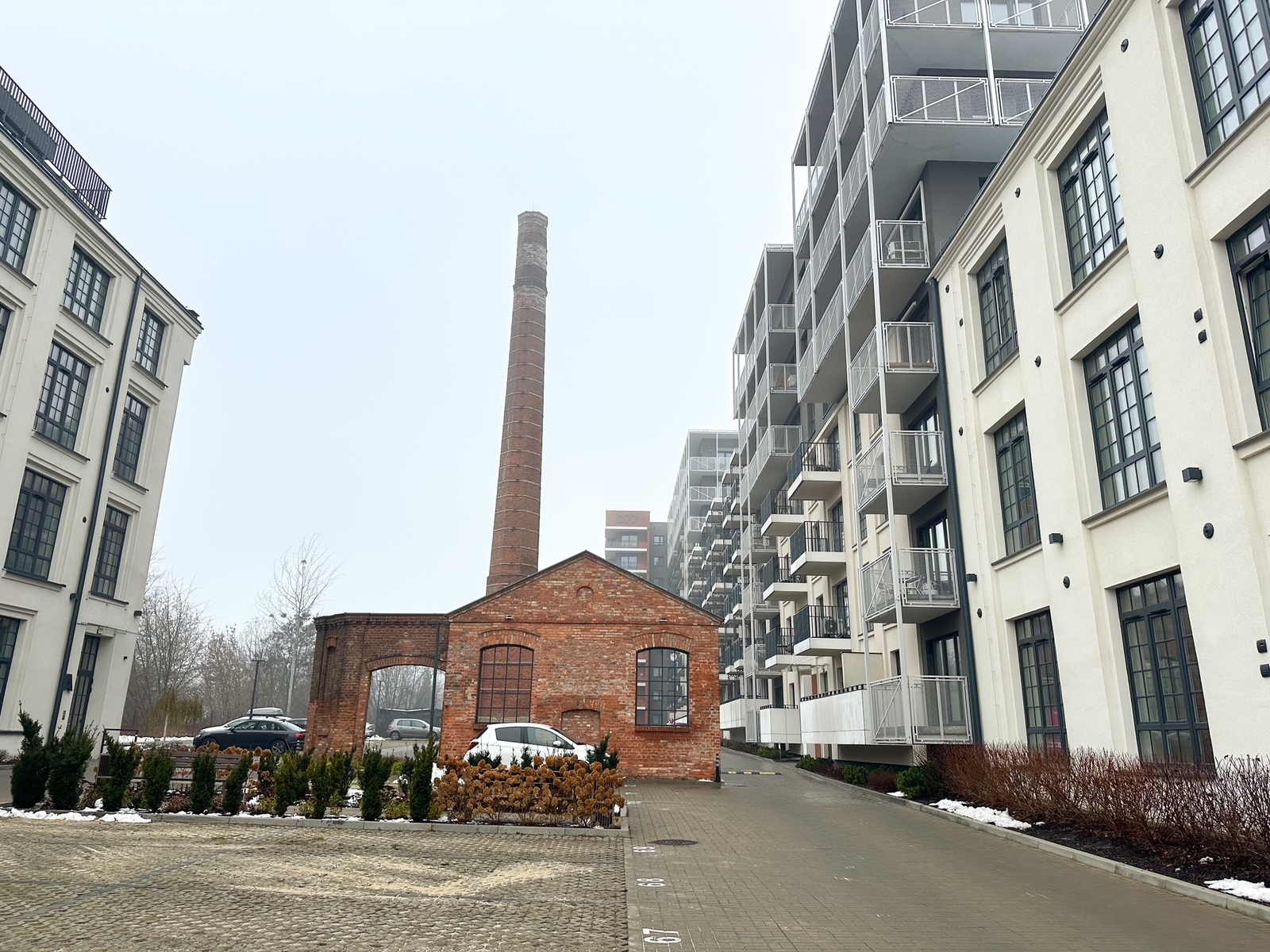 The building is located right next to the Łódź Manufaktura shopping center, close to the very center of Łódź, with easy access to other parts of the city. Public transportation stops are located nearby.